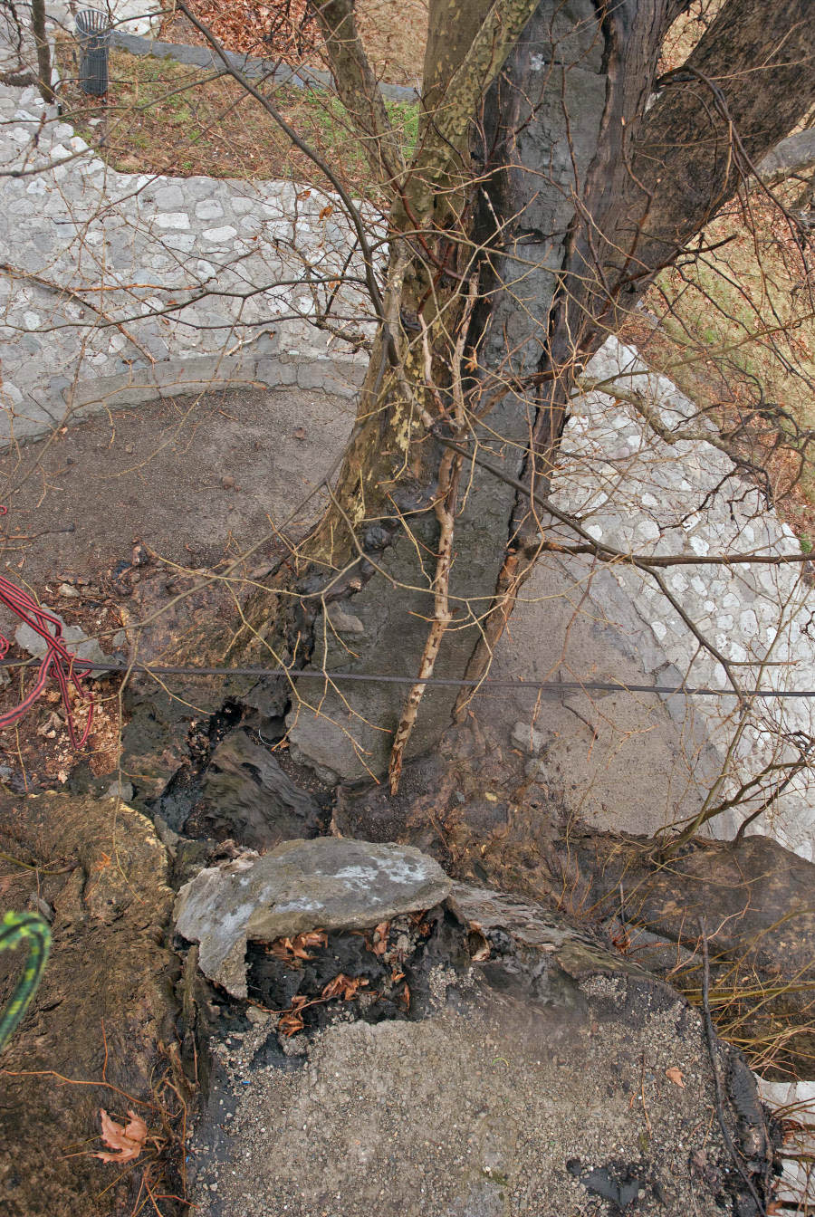 Eine im Baum vorhandene Kronensicherung aus Stahlseil ist wirkungslos weshalb sie entfernt gehört. Es wäre sicher sinnvoll die Stämmlinge durch locker eingebaute dynamische Kronensicherungselemente miteinander zu verbinden.